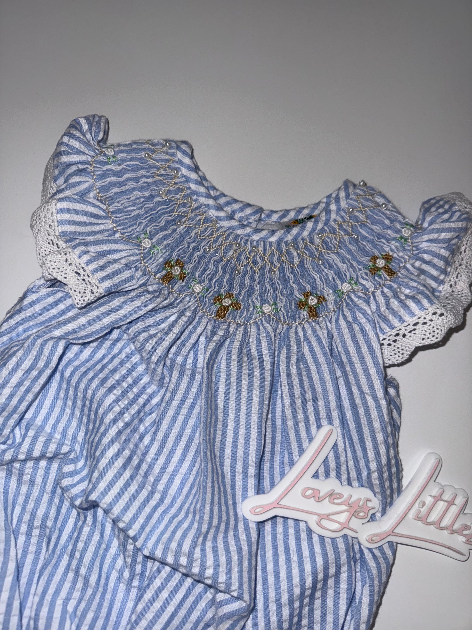 Girl Smocked Bubble Crosses & Pearls